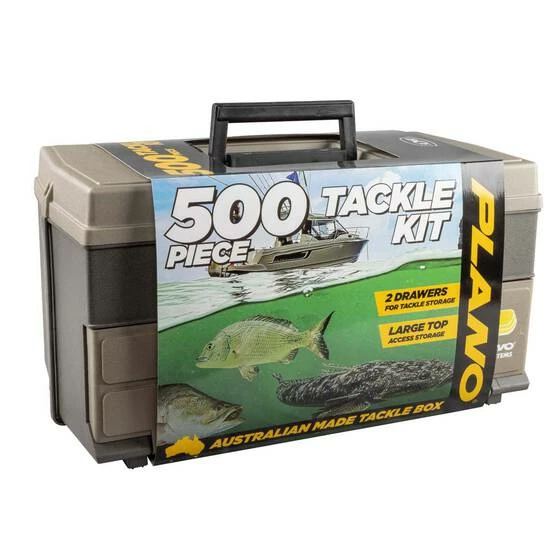 This 500-piece kit contains an assortment of hooks, swivels, snap swivels, ball sinkers, jig heads, soft plastics, a couple of lures, 3 different-sized round floats, a small hand-caster for catching your live bait, a hook disgorger and a fish scaler. A fantastic way for a beginning angler to get started, and a great present for the keen bream, whiting, flathead and tailor angler.